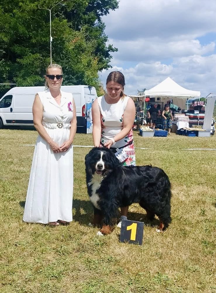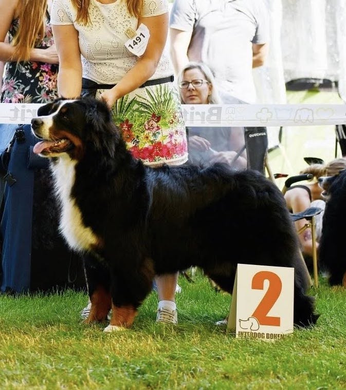 Květnová výstava v Zárybničné Lhotě byla díky koronavirové pandemii zrušena, ale nakonec se podařilo uspořádat výstavu v náhradním termínu v Jedovnici u Brna. Počasí až na jednu drobnou odpolední přeháňku vyšlo na jedničku a my jsme zase po dlouhé době potkali své známé a přátele. Třešničkou na dortu, pak byly výsledky našich bernských holek. Velký úspěch zaznamenalo především naše mládě Ginna, která ve třídě mladých v konkurenci 42 přihlášených fen získala krásné čtvrté místo. Děkujeme rozhodčím za jejich ocenění.